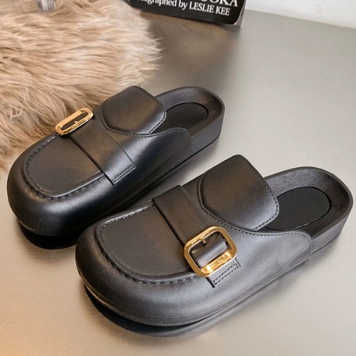DSS68 통굽 금장 버클 블로퍼 신발 직장인 사무실 앞막힌 실내화 로우힐 뮬 슬리퍼 데일리 봄 가을 간절기룩 가벼운 간편 코디 정장 오피스룩 빈티지 플랫 슈즈 3cm