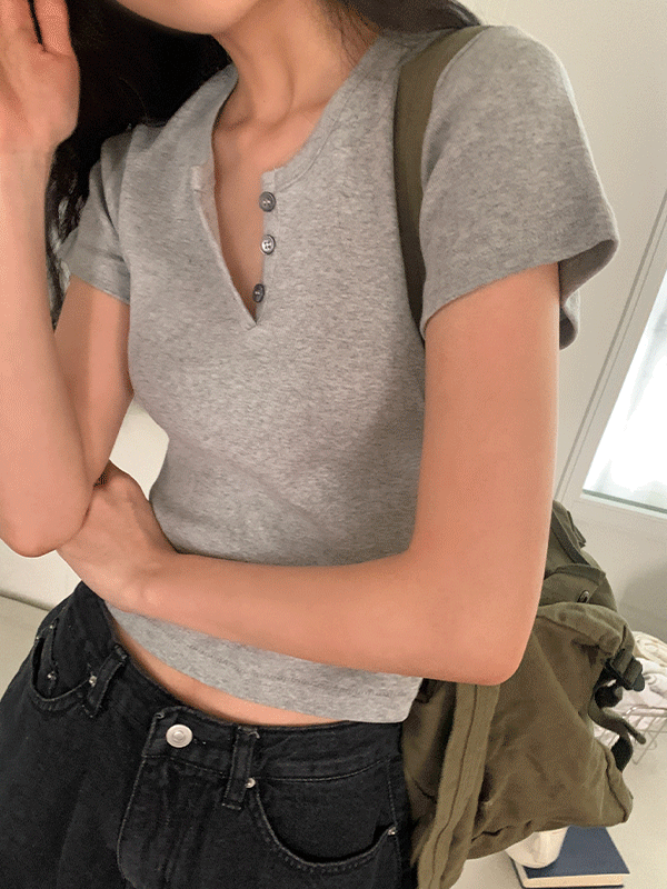[화이트,그레이소량당일/핏예쁨] 텔포 버튼 레이어드 반팔 티셔츠