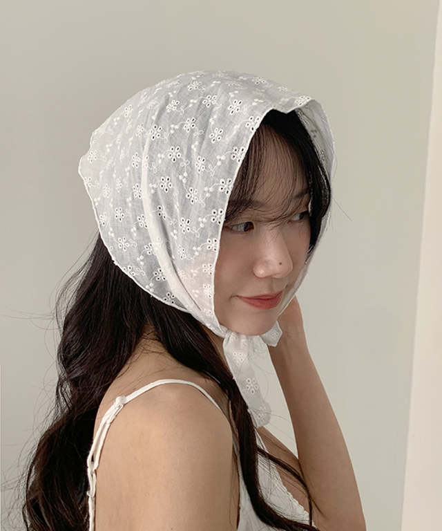 펀칭 플라워 자수 코튼 헤드 커치프 두건 스카프 2color