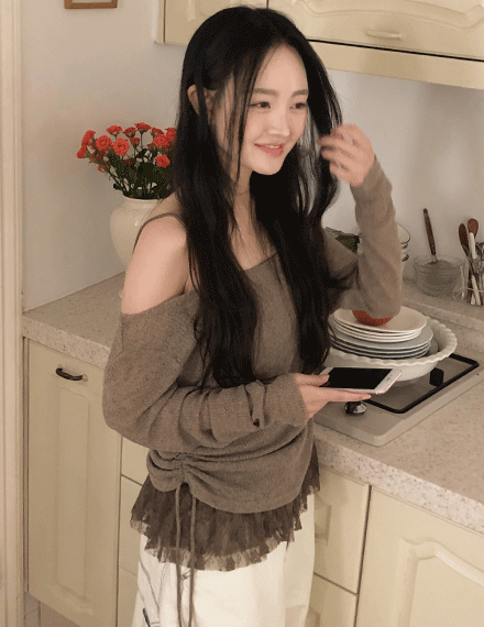 [나시set/오프숄더/셔링] 키너들 셔링 스트랩 오프숄더니트+레이스나시set