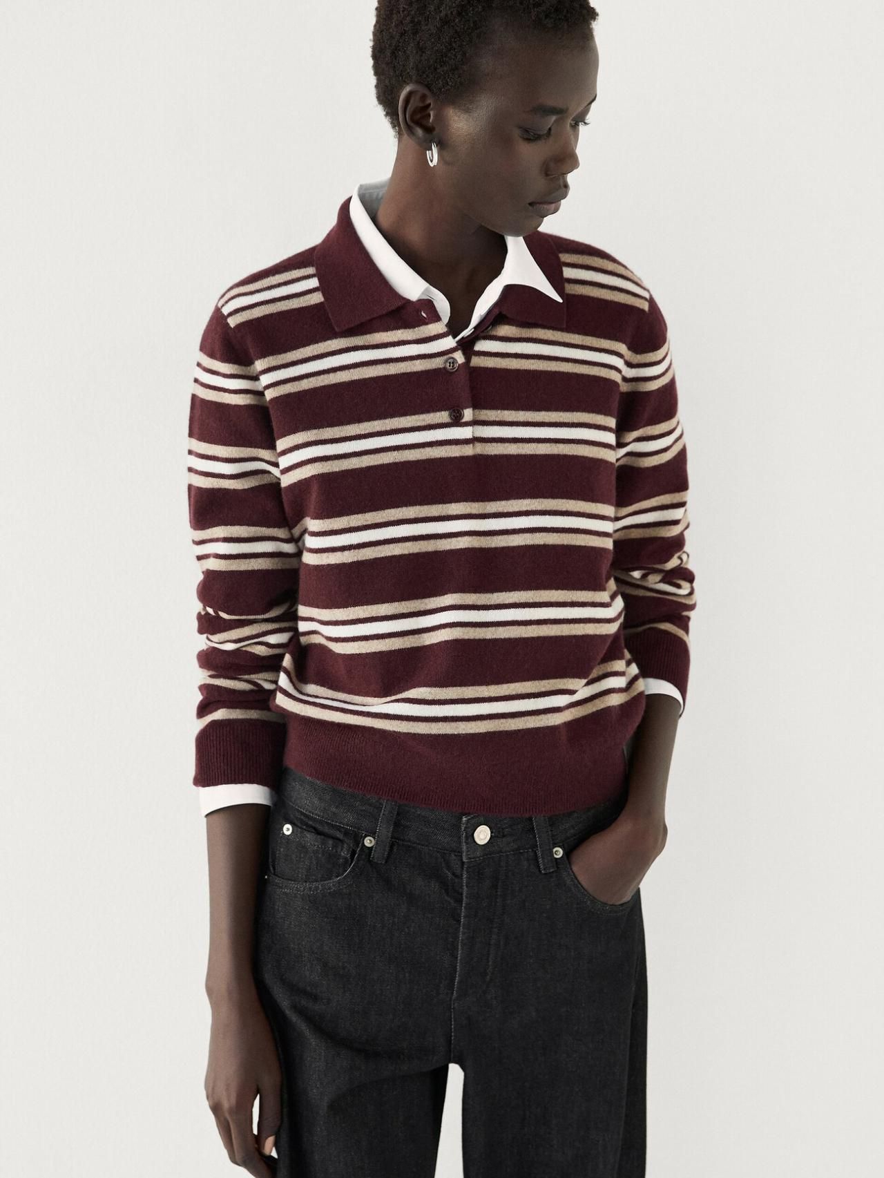 마시모두띠 스트라이프 니트 폴로 스웨터 5693/635 BURGUNDY