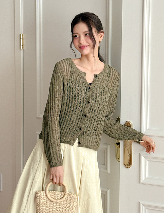 폴리에 시스루 골지 가디건 81139