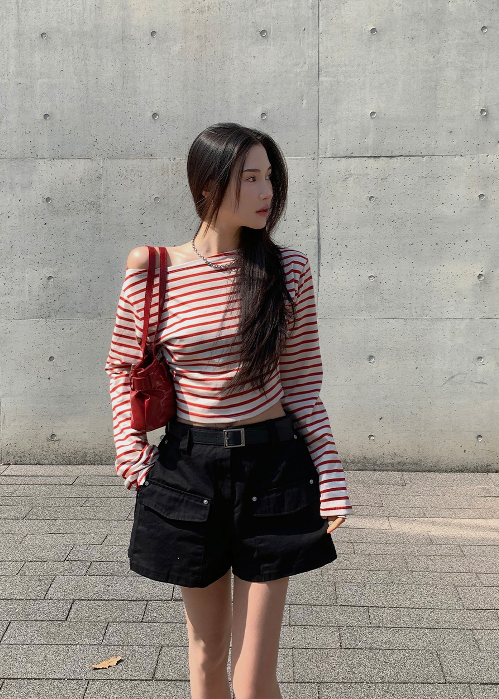 라드 단가라 오프 숄더 티셔츠 (3color) 0454