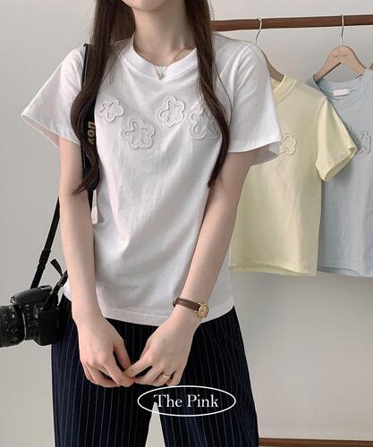 [5컬러색감맛집!/러블리힙/브랜드공정] 아뉴 루즈핏 플라워 패치 세미 크롭 반팔티 (5color)