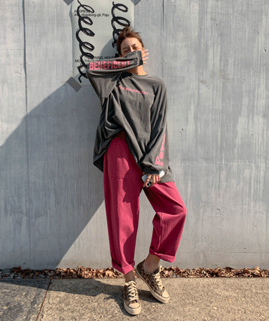베네 나염 피그먼트 긴팔 롱티셔츠