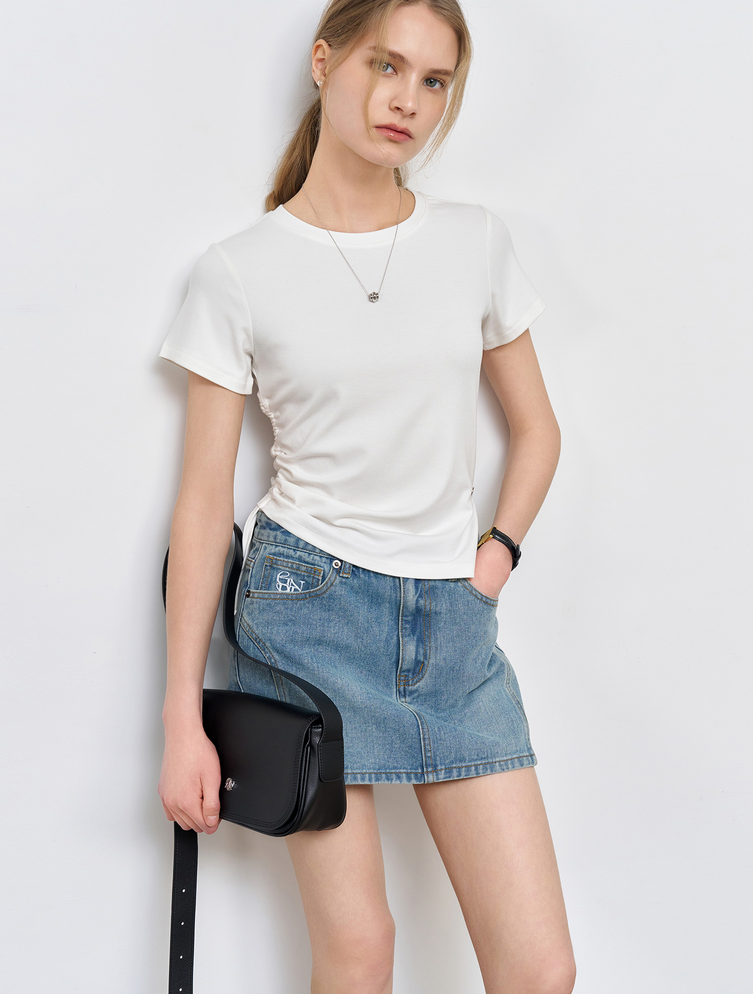 WOMAN 셔링 하프 티셔츠 [4COL]