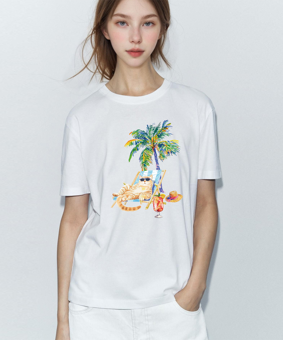 [LLDA]바캉스 캣 일러스트 화이트