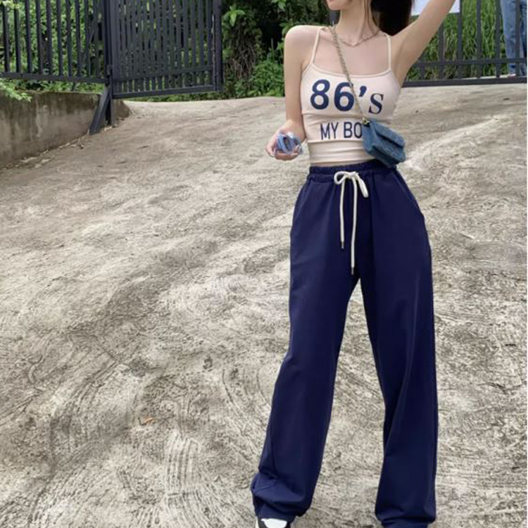 (당일출고/SET) 유넥 레터링 슬림핏 캡내장 백리스 스트랩 크롭 끈나시 밴딩 와이드 팬츠 투피스 트레이닝 추리닝 세트 휴가룩 휴양지룩 페스티벌룩 흠뻑쇼 2color