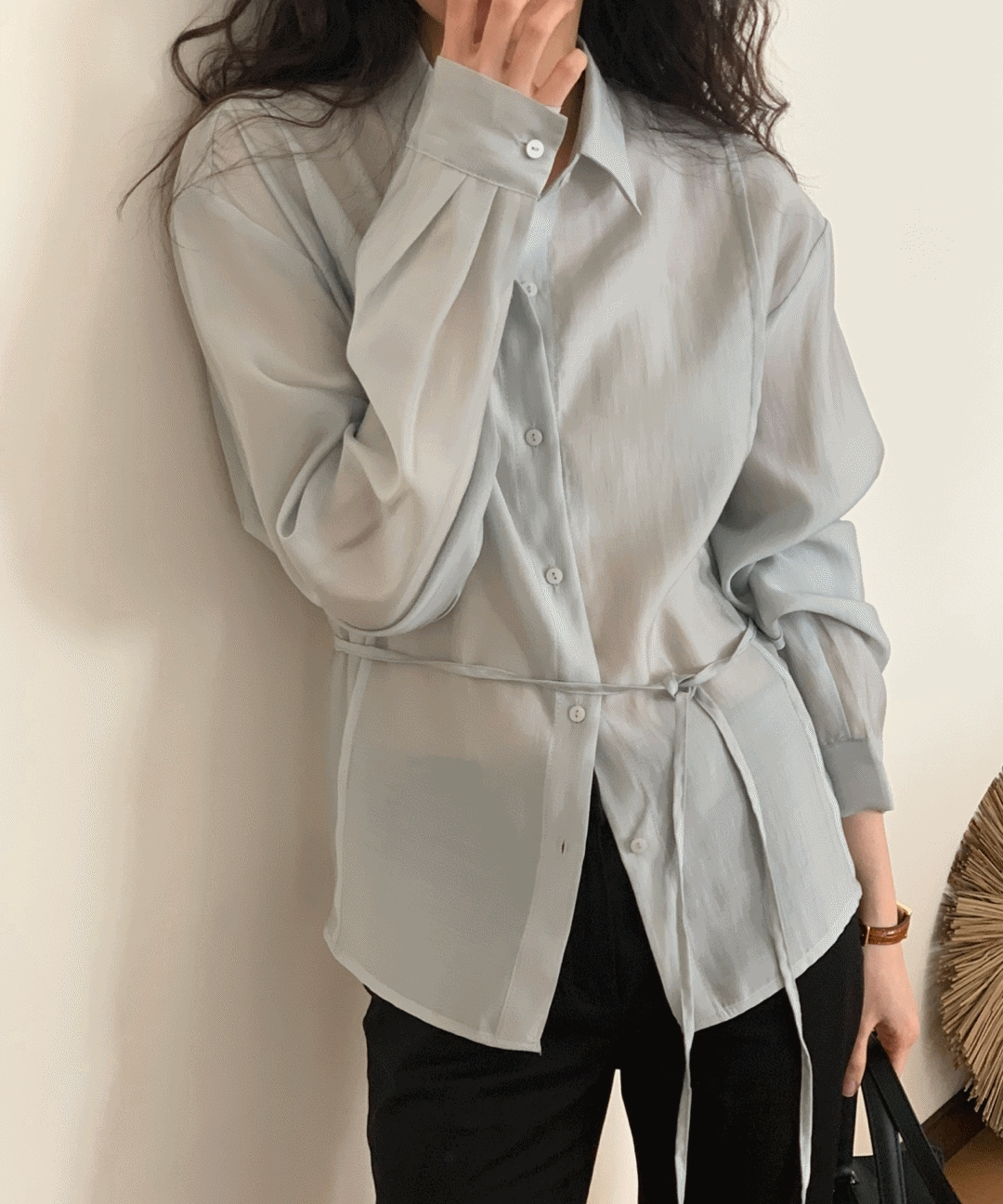 [하객룩 강추!] 버터플라이 오간자 시스루 리본 카라 롱 핀턱 셔링 긴팔 블라우스 여리여리 말라핏 오피스룩 출근룩 결혼식 여름 가을