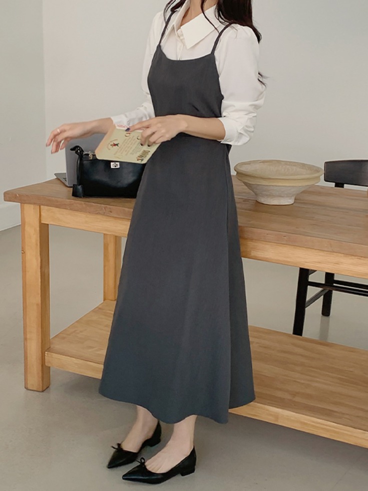 [1천장 돌파✨][몸매보정핏/하이퀄리티✦] [44-120] 헤르이벤 뷔스티에 레이어드 카라넥 롱 원피스(봄-신상-봄신상-데일리-데이트-데일리룩-데이트룩-하객룩-페미닌룩-오피스룩-출근룩-캐주얼룩-빅사이즈-자체제작-1