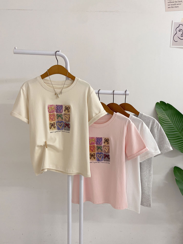 호딜미 리본 큐브 레터링 반팔 티셔츠(4color)