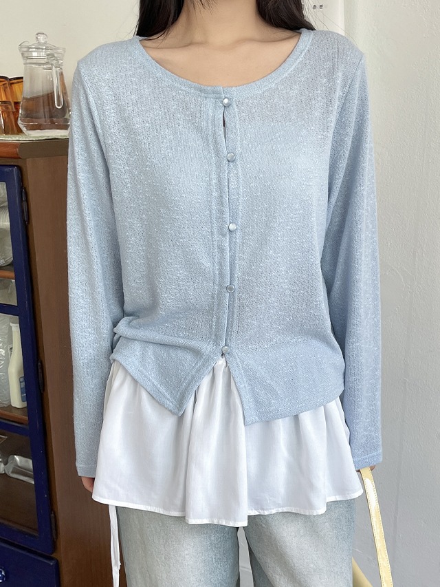빅사이즈 55-99 챠아루 시스루 세미 크롭 라운드 긴팔 가디건 살안타템 장마룩