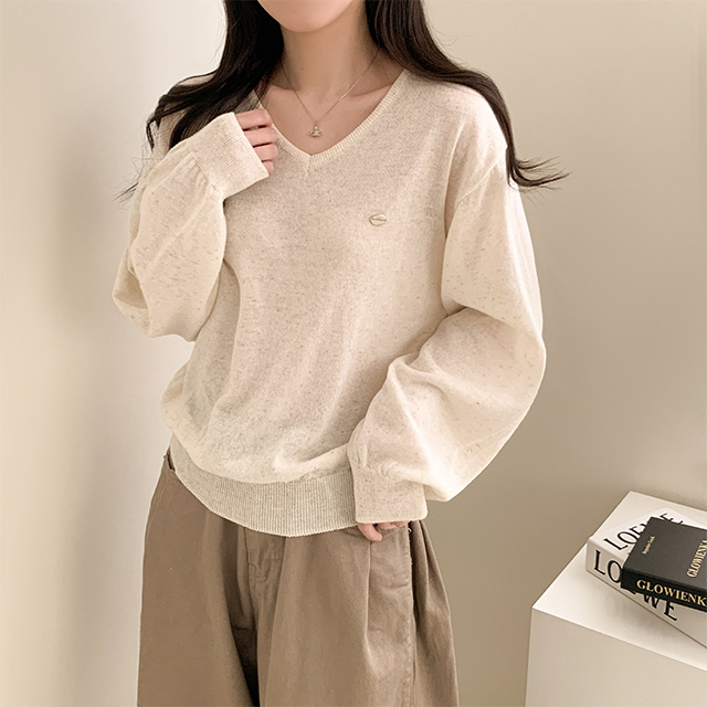 [살안타템/여름긴팔] 나브 브이넥 펜던트 루즈핏 시스루 린넨 긴팔 니트 (9color)