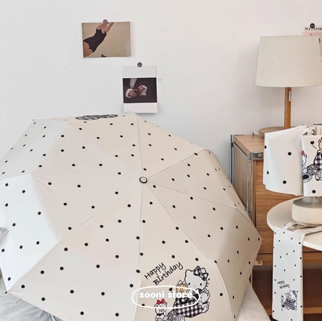 화이트 도트 키티 우산 단우산 삼단우산 귀여운우산 장마철 우산 추천 키티 우산