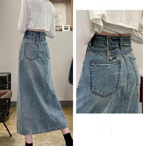 앞트임 뒷버튼 데님 스커트