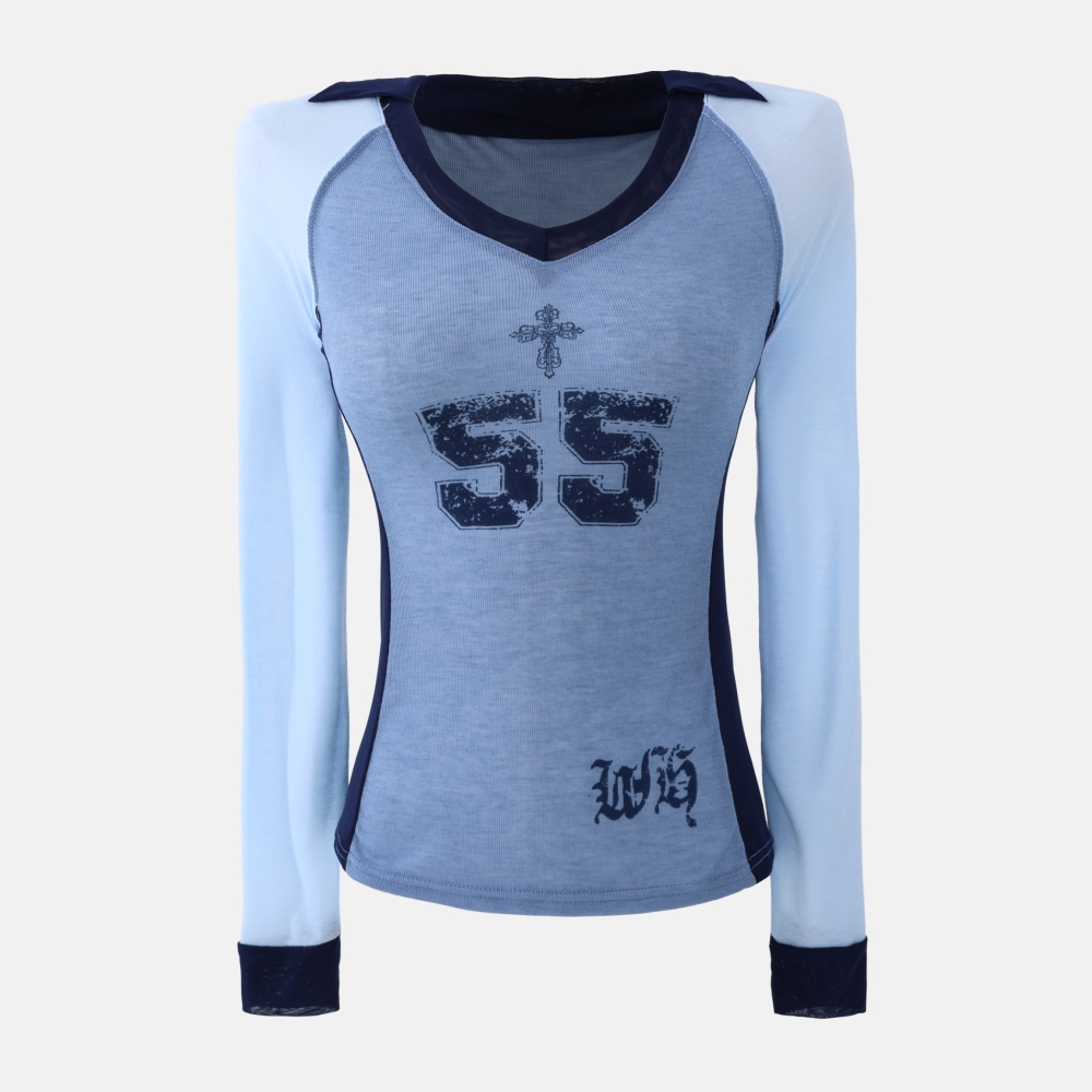 [3color]55 카라 프린트 배색 오버핏 시스루 슬림핏 긴팔 티셔츠