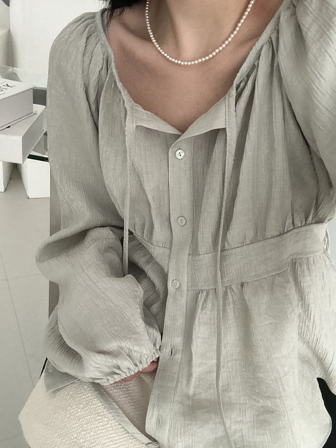 쥬시 링클 스트링 블라우스