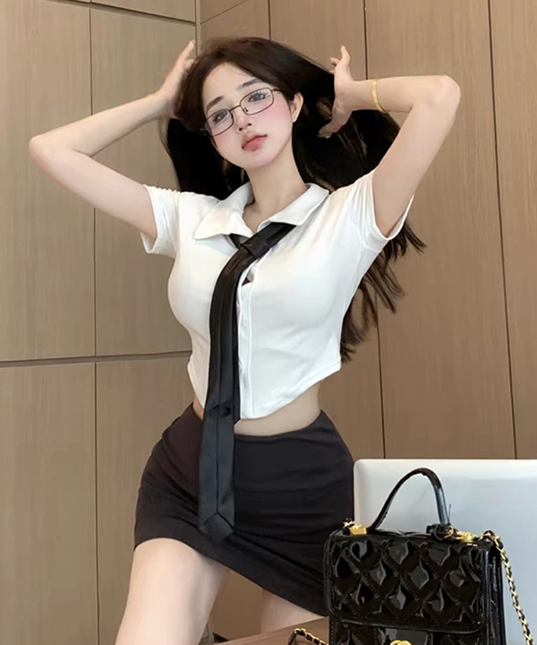 [코디세트 탑+넥타이+스커트] 포포 캐주얼 스쿨룩셋업 #반팔