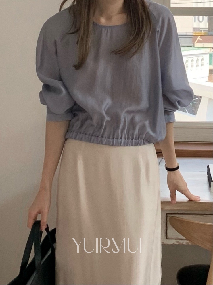 vergamot 베르가못 시티 텐셀 시스루 밴딩 라운드 크롭 블라우스 3color