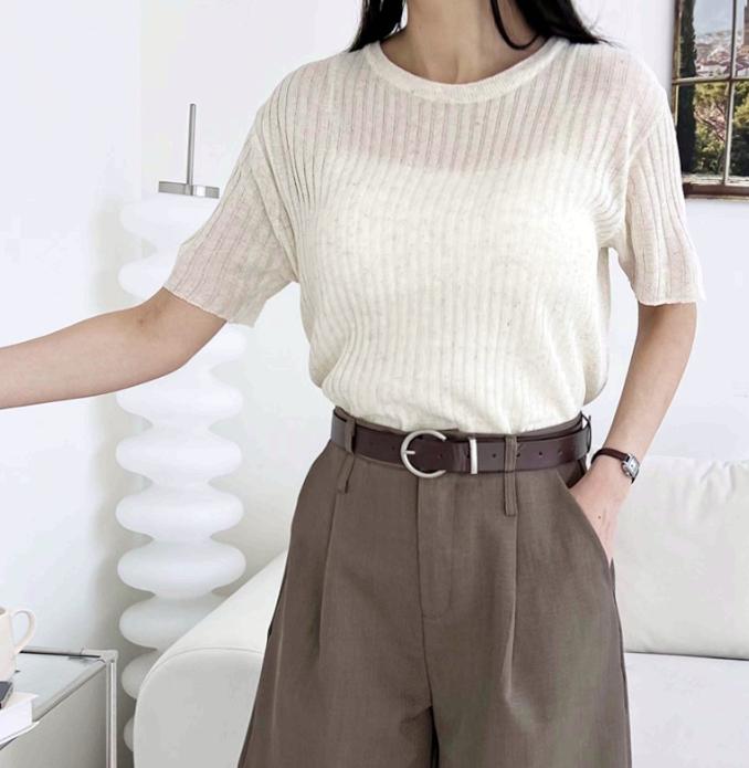 골지 여성 반팔 니트 여름 여자 반팔티 니트티 2색