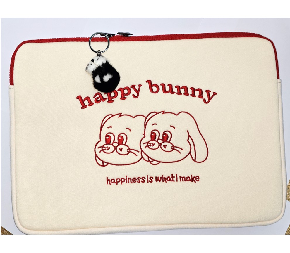 (당일발송)Happy Bunny 토끼 캐릭터 노트북 15인치 페브릭 파우치 너구리 팬던트 인형 포함 맥북15형 그램 15.6인치