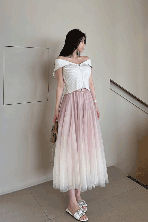 로맨틱 그라데이션 쉬폰 롱 샤스커트