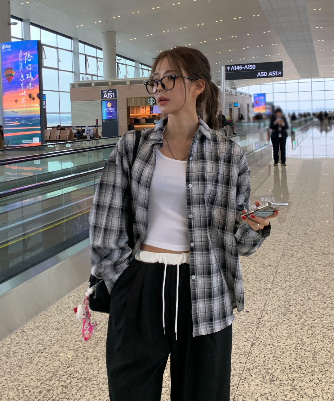보보 얇은 커버업 오버핏 박시 린넨 체크 셔츠