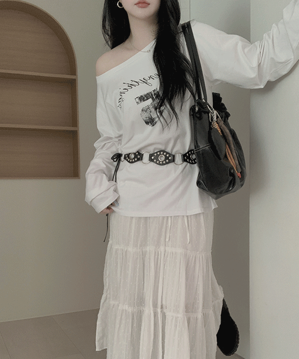 #13263 여리여리~ 오버핏 레터링 프린팅 오프숄더 긴팔t : 3color
