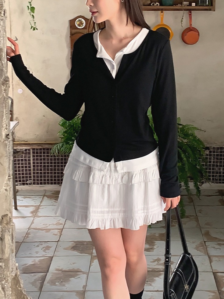 [레귤러핏/트렌디템] [44-120] 레니오드 스판 배색 레이어드 가디건 ( 봄-가을-신상-데일리룩-데이트룩-캠퍼스룩-빅사이즈-120사이즈-자체제작-신축성-긴팔-트렌디 )