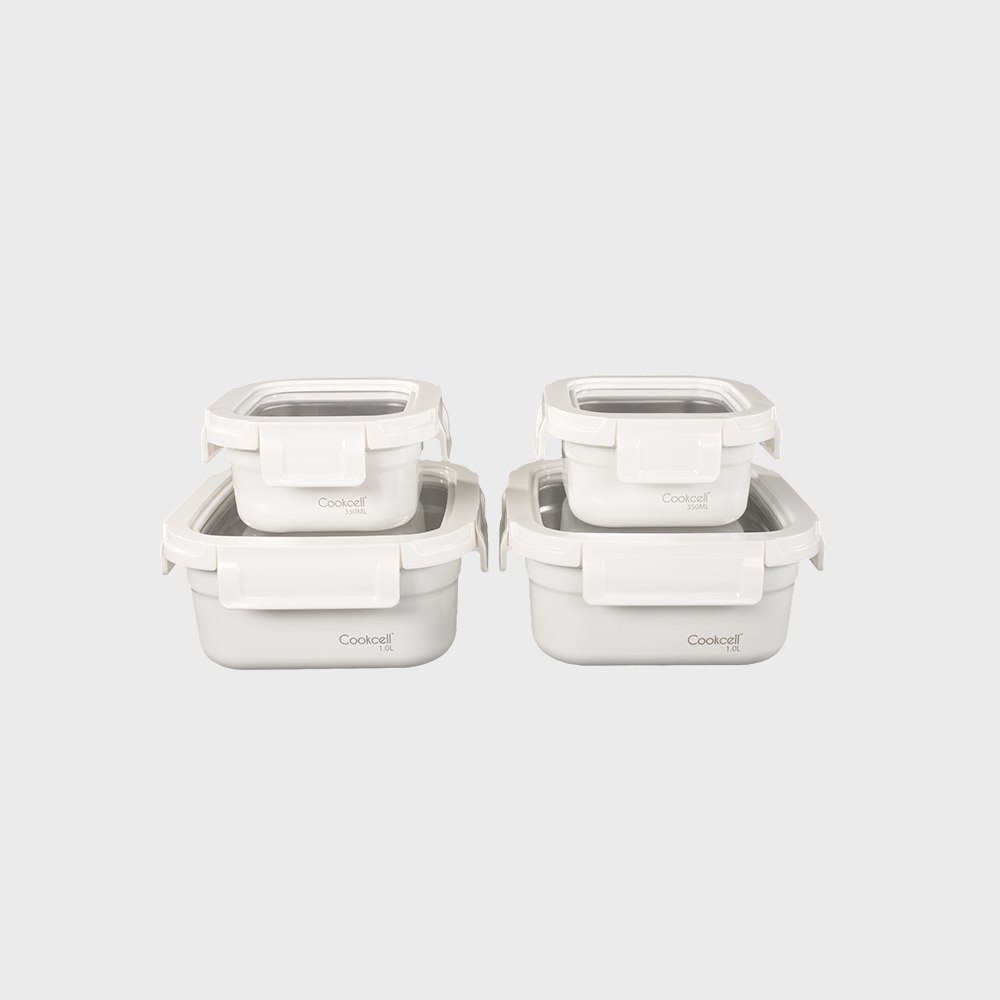 쿡셀 스텐 도시락 반찬통 밀폐용기 350ml & 1L 4P 세트
