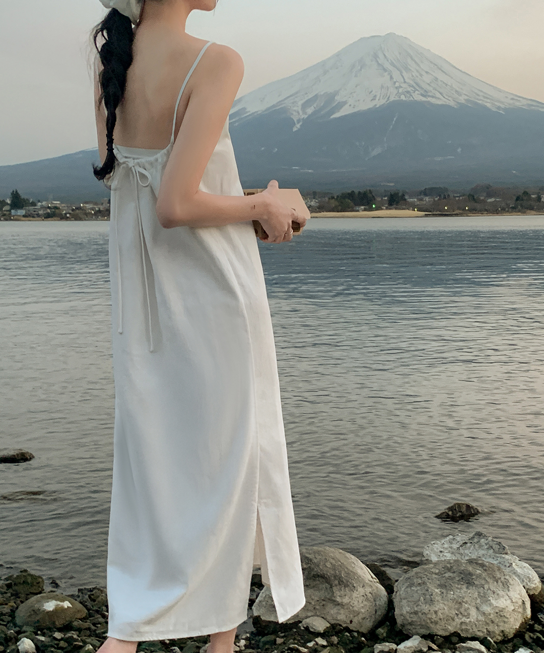 [자체제작/S-L/바캉스룩🌴]로샤인 백 리본 나시 롱 원피스 (데이트룩/휴양지룩/롱원피스/나시원피스/레이어드/여름원피스/리본원피스)