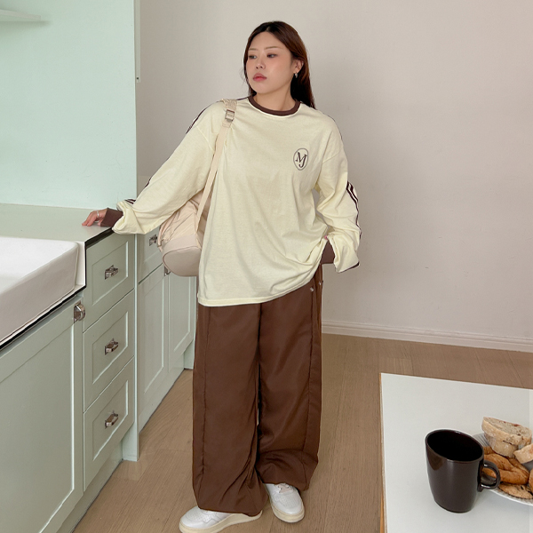[빅사이즈]이블렛 벤노제 스트링 버튼 롱 와이드 팬츠 제이스타일
