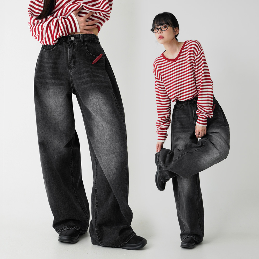 *허얇골넓핏*[핏보장][MADE] 로우피 빈티지 워싱 사이드 폴딩 와이드 데님 팬츠 2color