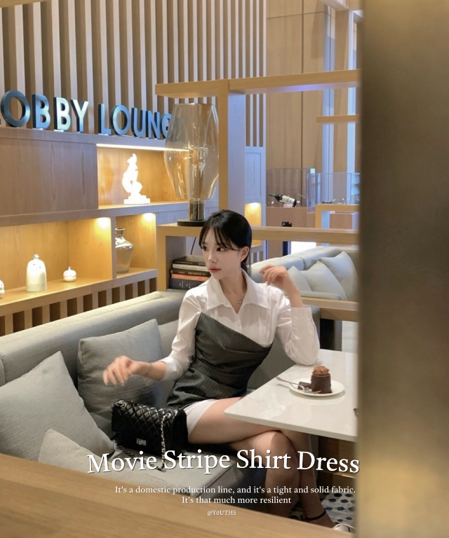 [하객룩] 무비 스트라이프 셔츠 원피스 봄 오피스룩 데이트룩 미니 원피스 벚꽃 데일리룩 그레이 블랙