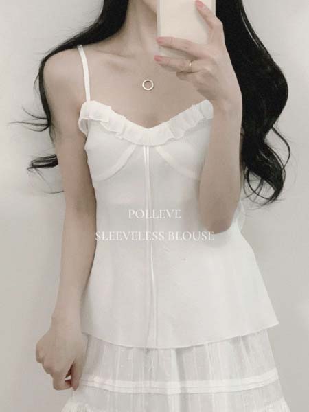 [끈조절] 폴리브 프릴 끈나시 블라우스 - 1C