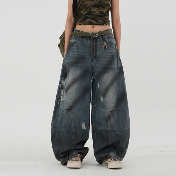 [S,M,L] 벌룬핏 아메카지 빈티지 와이드팬츠 청카고 카고바지 벌룬팬츠 벌룬바지 데님 청바지 그런지룩 빈티지룩