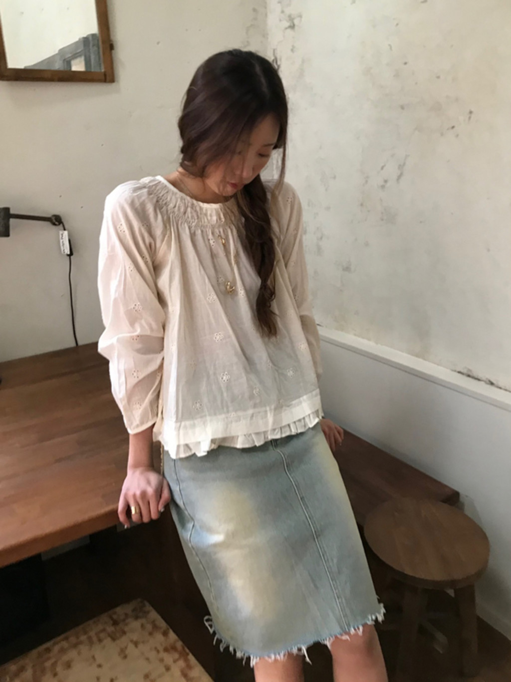 옐로우 태슬 데님 스커트