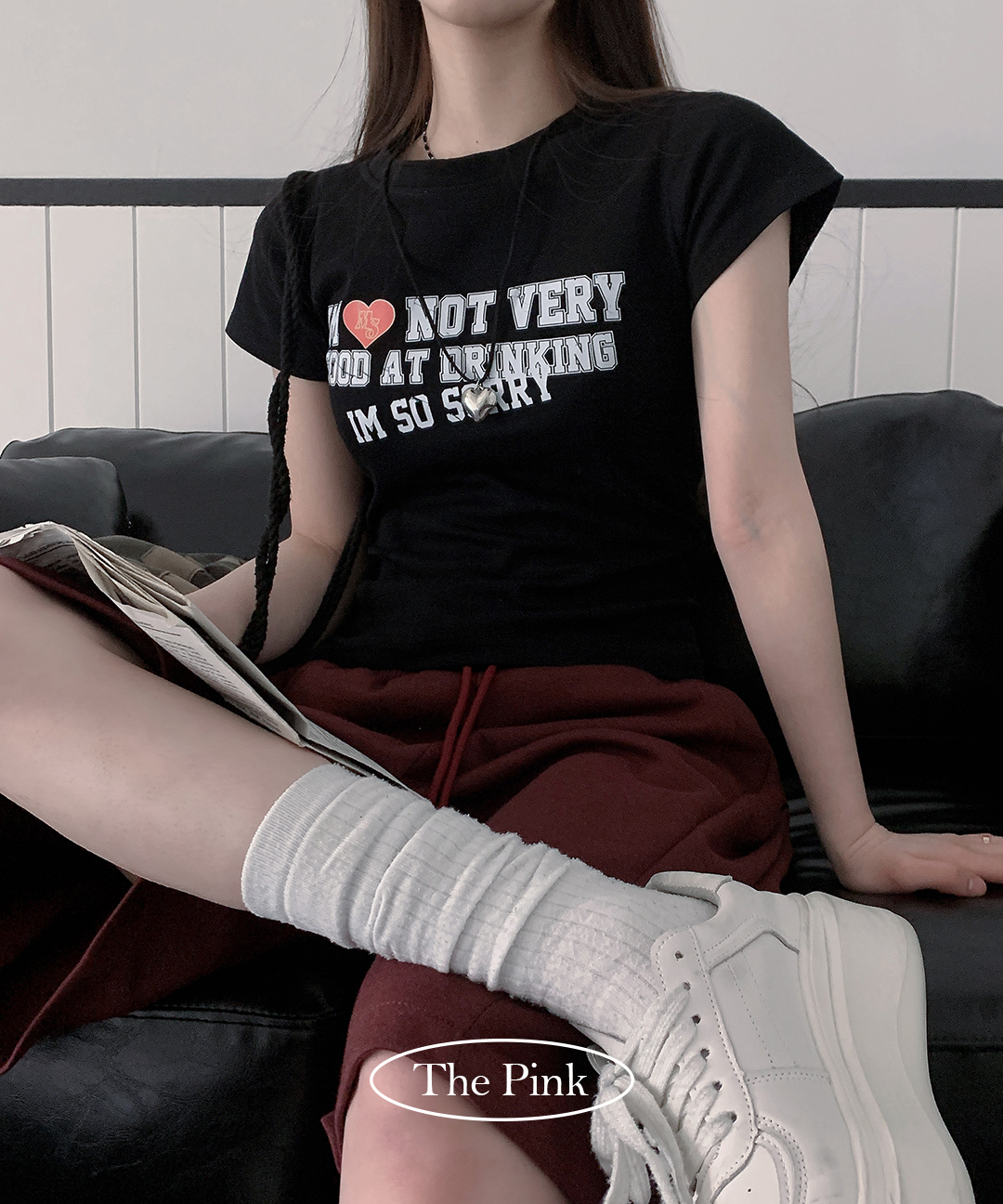 [여름옷/데일리힙] 링키 슬림핏 크랙 레터링 프린팅 세미 크롭 반팔티 (2color)