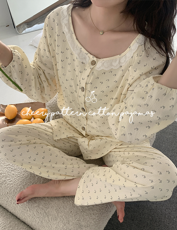 큐비드 아이보리 체리 자수 파자마세트 QB-311