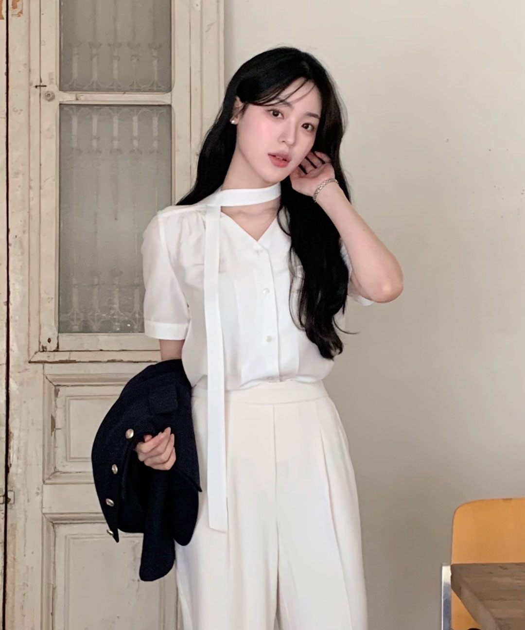 [🌻필수하객룩][반팔/긴팔ver][단독상품] 베이직 타이 블라우스_CVBWF2601Q