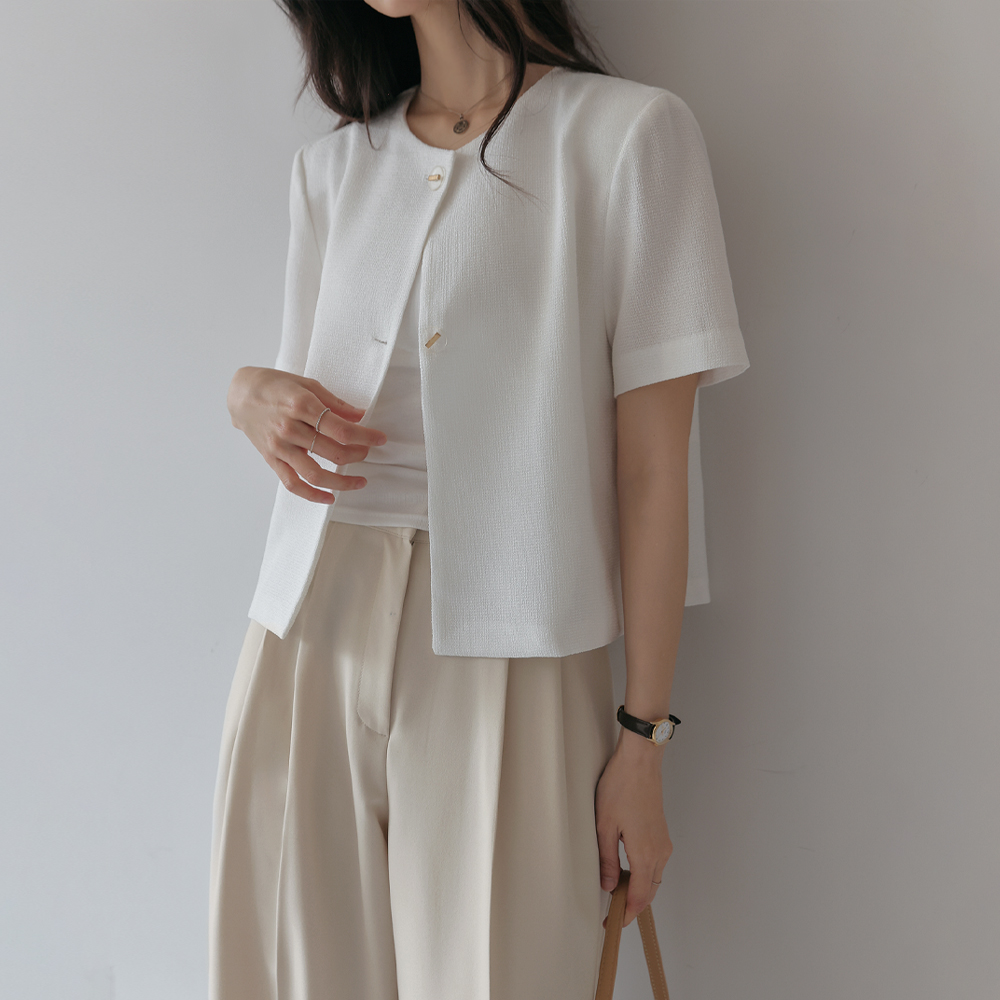 오베니 골드 버튼 트위드 1/2 자켓 (여름/반팔/크롭/숄더패드/라운드넥/데일리룩/오피스룩/하객룩/격식룩)