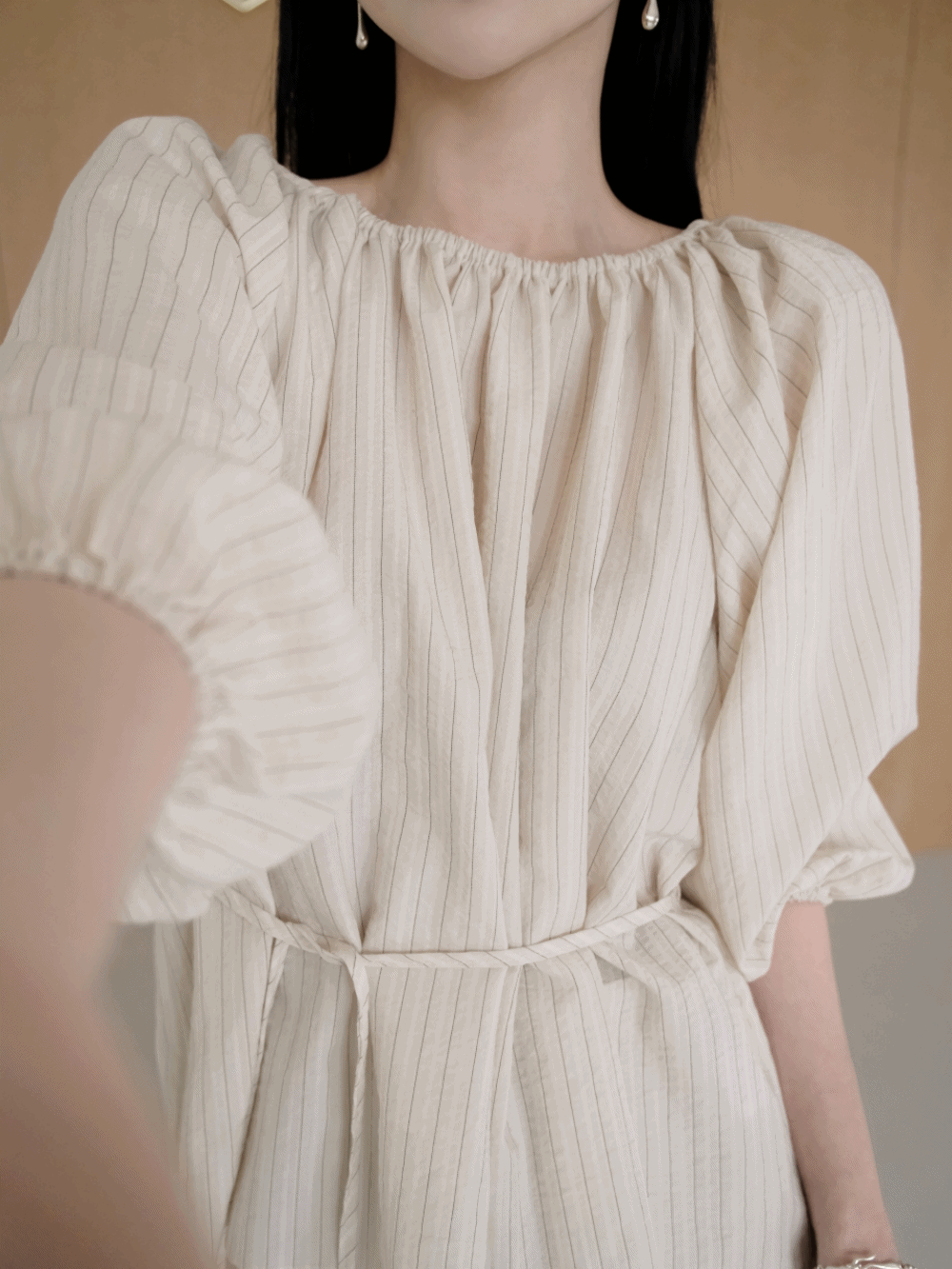 (스트라이프ver.)로렐 셔링 플레어 주름 블라우스_Laurel blouse