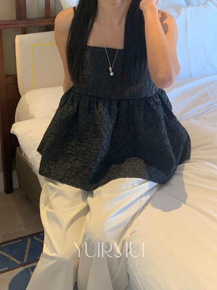 소냐 링클 자가드 플레어 뷔스티에 슬리브리스 블라우스 2color