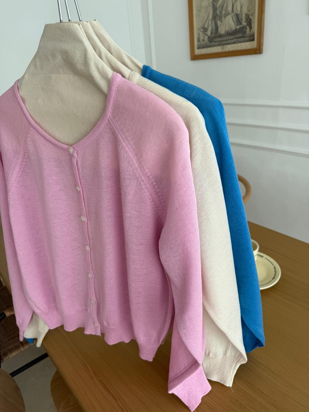 네츄럴 여름 긴팔 루즈핏 라운드 가디건