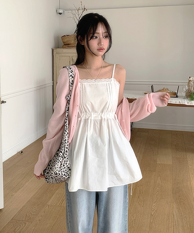 [만능레이어드💗길이조절👍] 봄바람 나시 스퀘어넥 코튼 레이스 스트링 리본 A라인 원피스 뷔스티에 블라우스 봄 여름 / 벚꽃룩 휴가룩 휴양지룩 캠퍼스룩 클래식블랑