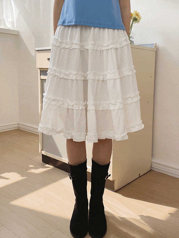 [ONLY] 게러드 밴딩 프릴 미디스커트
