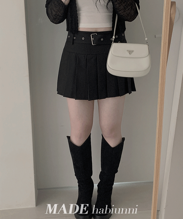 MADE #13271 [2기장/키작녀 키큰녀/벨트SET/속바지안감] 데일리 플리츠 A라인 벨트 미니스커트 : 3color / XS~2XL