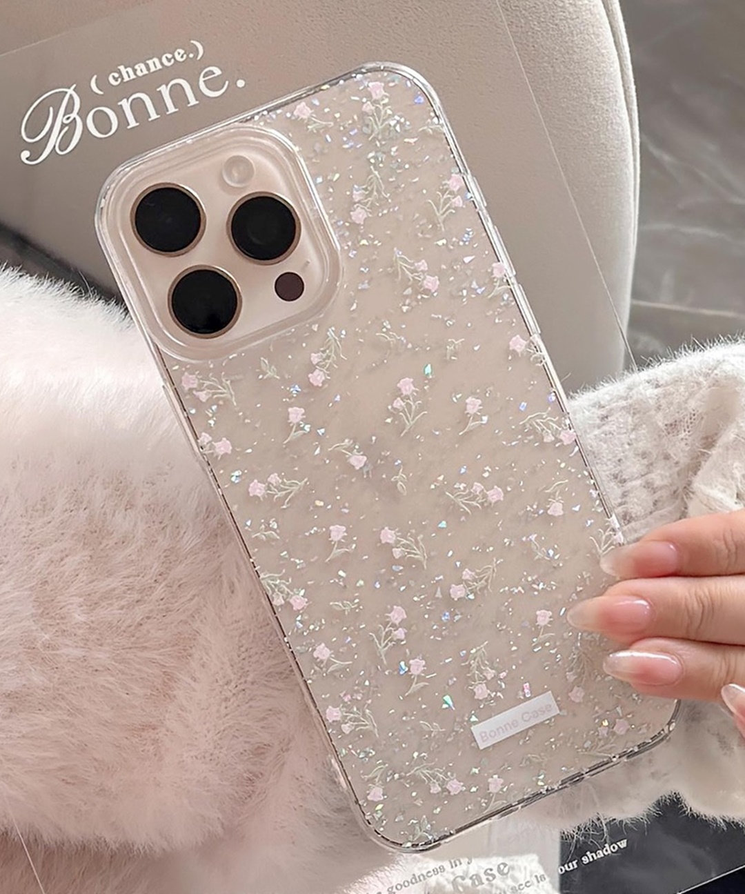 17입고❤핑크 로즈 꽃 글리터 펄 반짝이 투명 아이폰케이스 젤 하드 핸드폰 휴대폰케이스 ( 아이폰 12 13 14 15 16 17 프로 맥스 에어 )