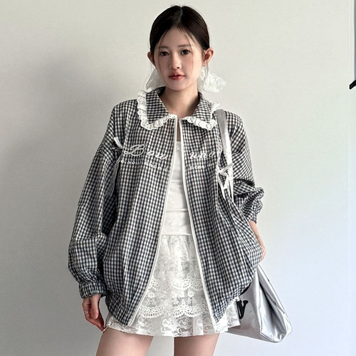 [3색] 레터링 자수 레이스 트리밍 썸머 가디건