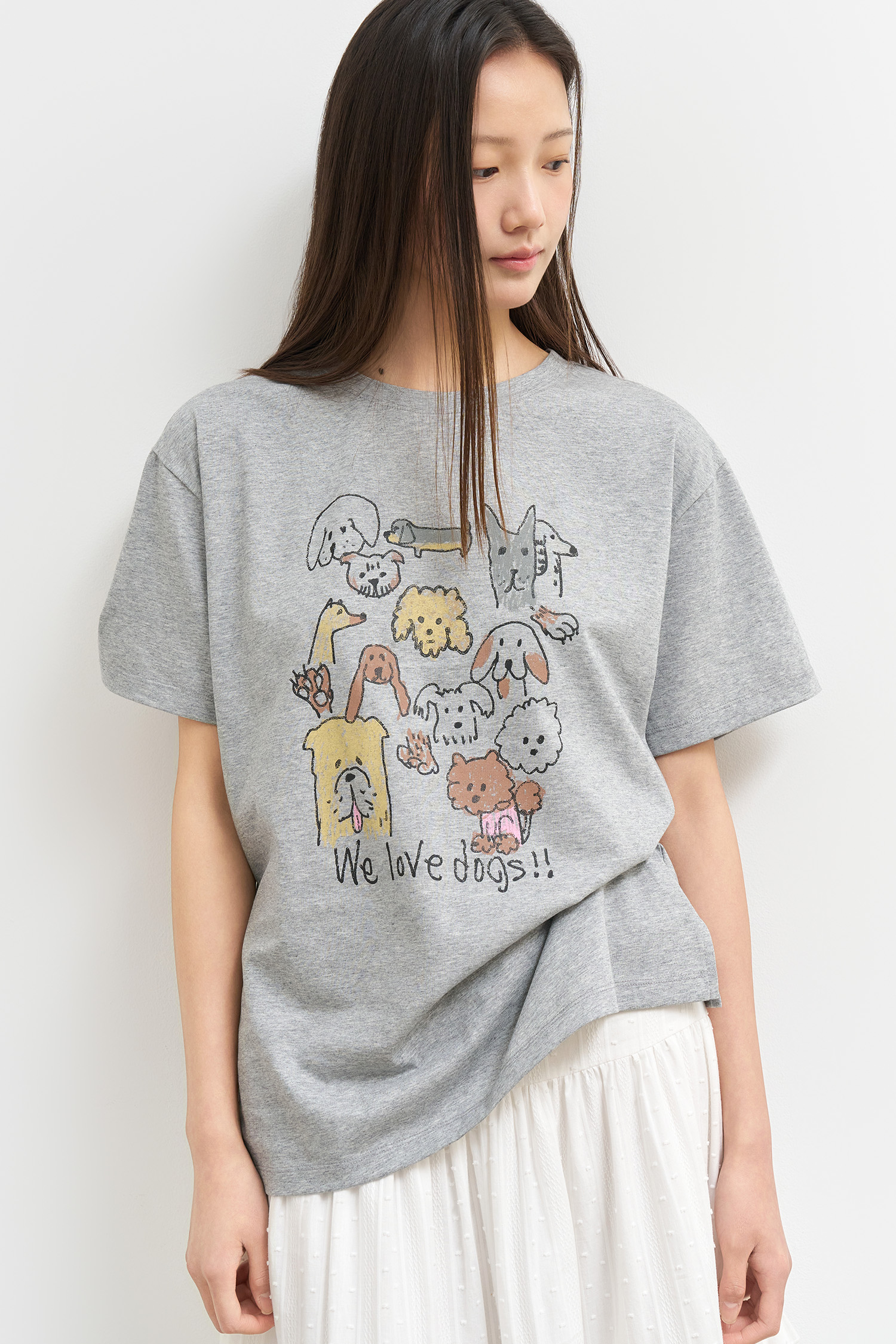 WOMAN 퍼피 프렌즈 루즈핏 반팔티 [MELANGE GREY]